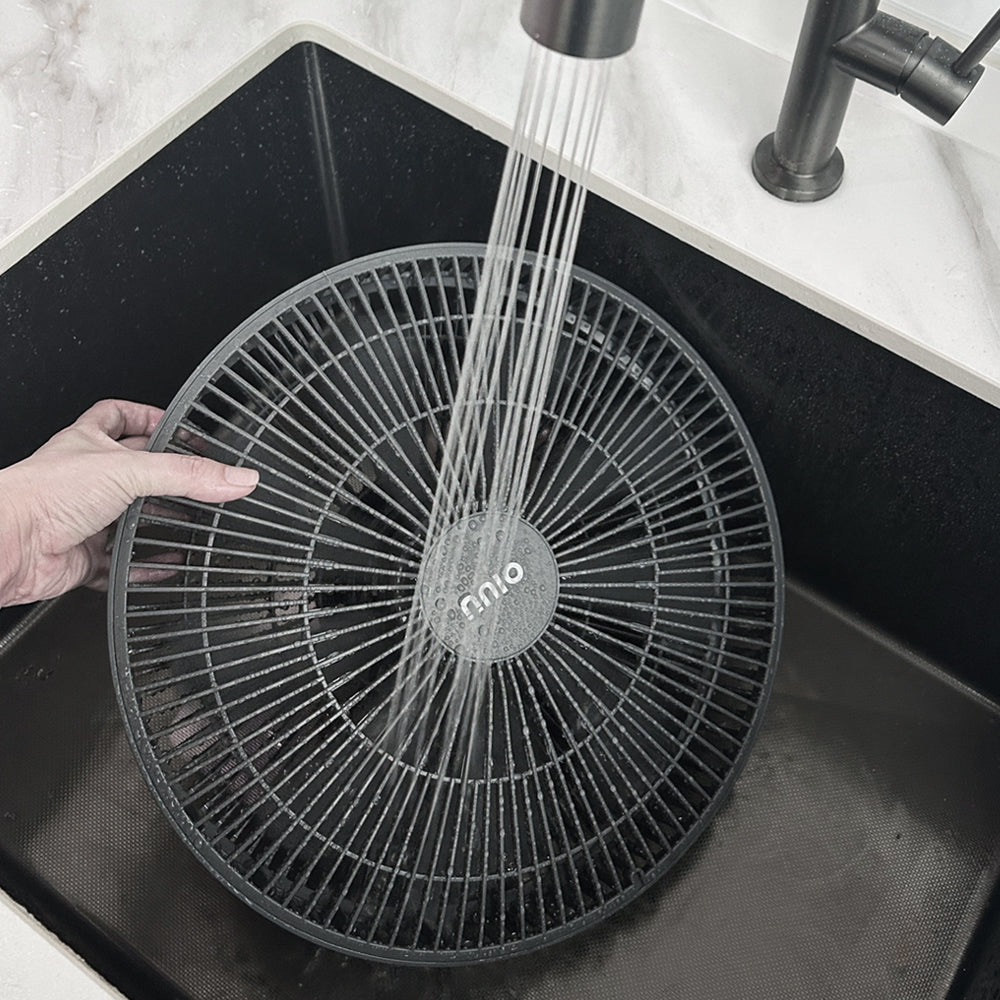 Unplug the unit, remove the front grill, and wipe down the blades with a damp cloth. NNIO air circulator fans are built for easy disassembly, so regular cleaning is simple and quick.