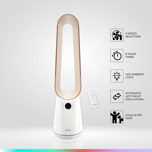Simplify your cooling experience with NNIO's innovative bladeless tower fan collection, where sleek minimalism meets powerful, safe airflow.