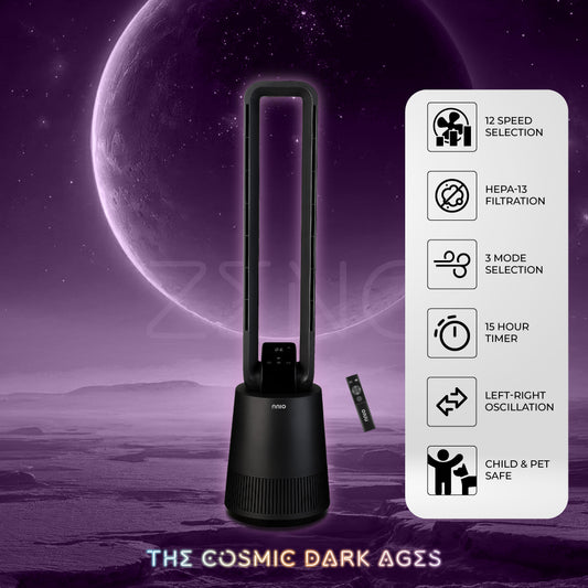 [NEW LAUNCH] ZENO BLDC Motor Air Purifying Bladeless Fan with Remote Control, 12 Speed, 3 Mode, Left-Right Osc, HEPA-13 Filtration