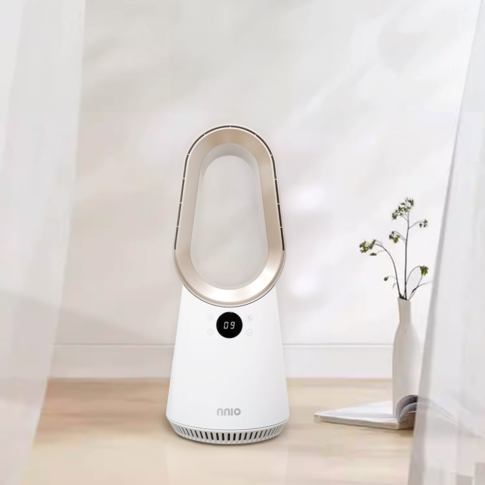 Enjoy modern cooling with the NNIO BLDC Bladeless Fan. This sleek and safe fan features 9 stepless speed settings, adjustable swivel angles, and a timer for up to 8 hours of continuous comfort. The bladeless design ensures safety for children and pets, while the brushless DC motor provides powerful, quiet, and energy-efficient performance.