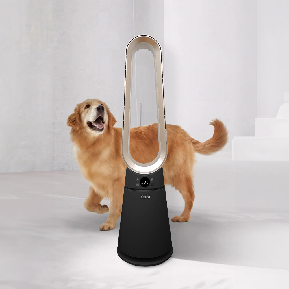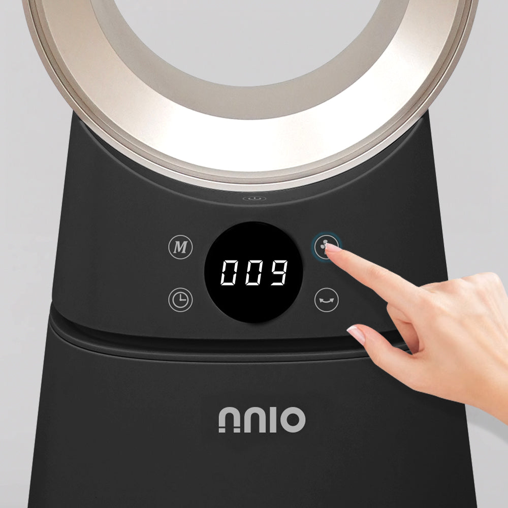 Experience unparalleled cooling with the NNIO BLDC Bladeless Fan with Remote. This fan features 4 dynamic swivel angles (30°, 60°, 90°, 120°), 9 seamless speed settings, and an 8-hour timer for effortless comfort. The bladeless design ensures safety for children and pets, while the brushless DC motor delivers powerful, quiet, and energy-efficient performance. With convenient remote control, you can adjust settings without getting up, making it perfect for any room in your home.
