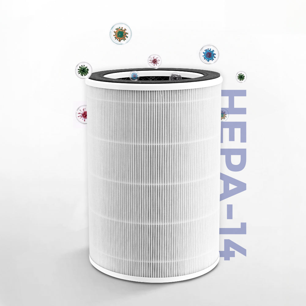 *HEPA-14 filter captures up to 99.995% of airborne particles as small as 0.3 microns. While HEPA-14 is commonly used in environments such as hospitals, this product is not certified or intended for medical use in healthcare settings. For specific medical-grade air filtration needs, consult healthcare professionals.