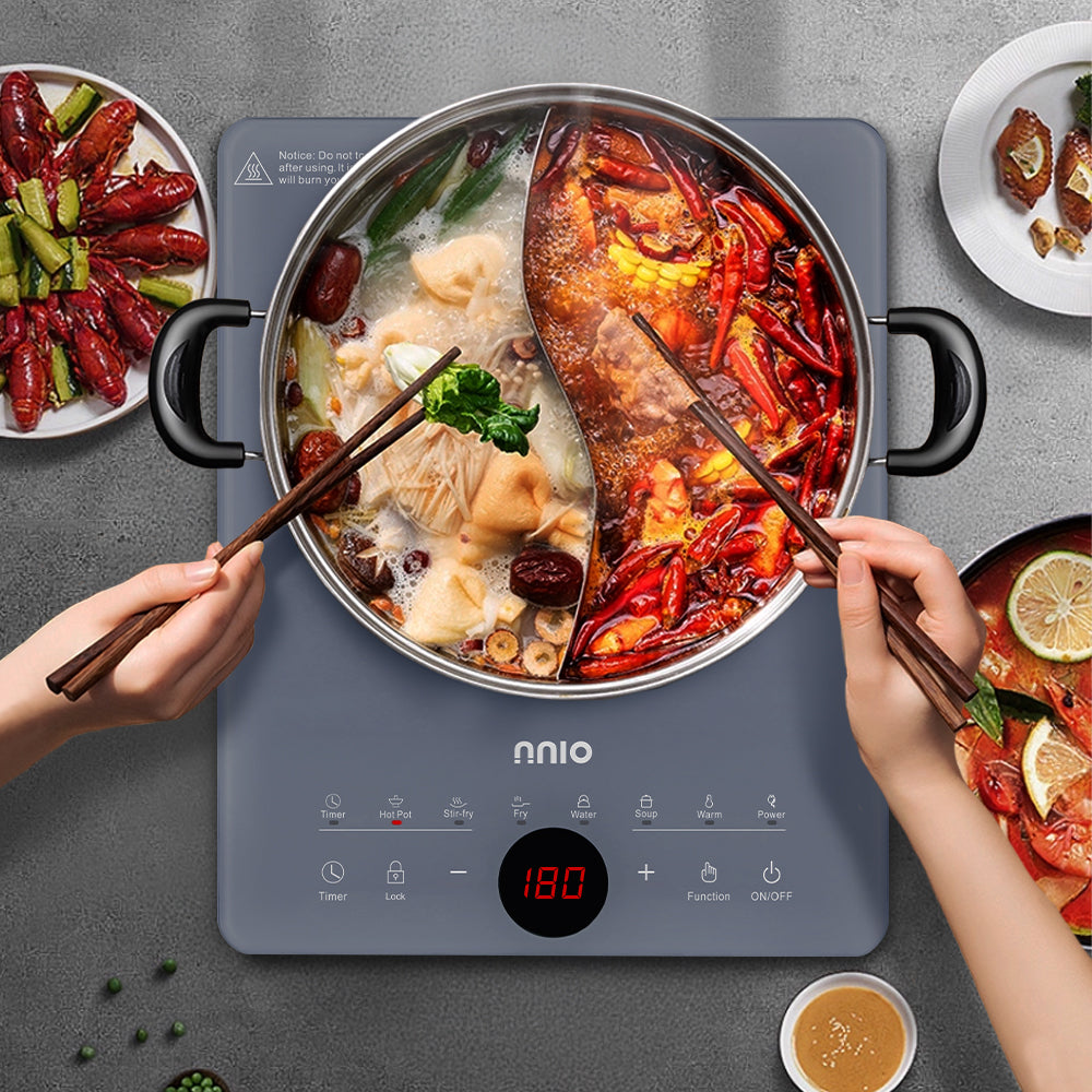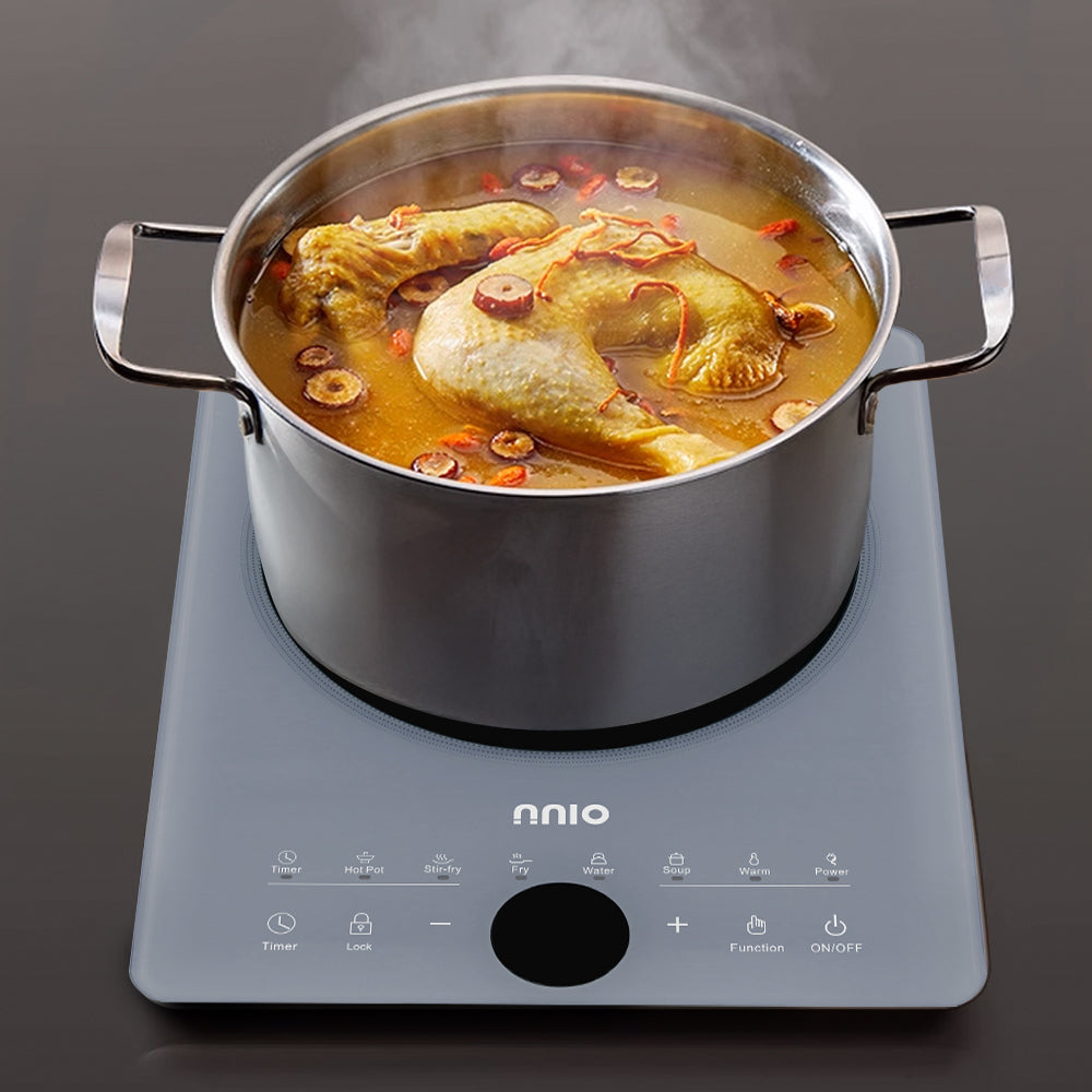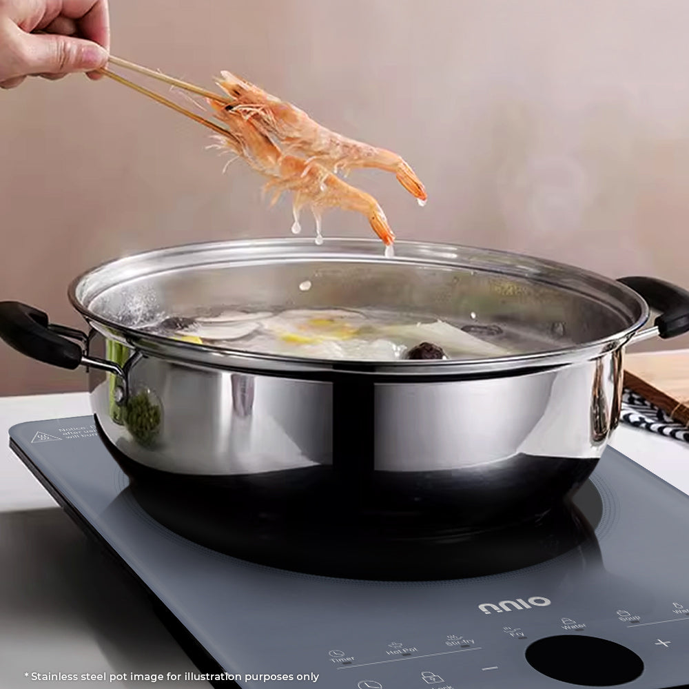 Experience precision and convenience with the NNIO Induction Cooker. Featuring 6 smart cooking modes, a 24-hour timer, child-lock safety and adjustable temperature control, it’s built for modern kitchens. Includes a complimentary induction-compatible stainless steel pot for immediate use. Sleek, compact and available in two elegant colours.